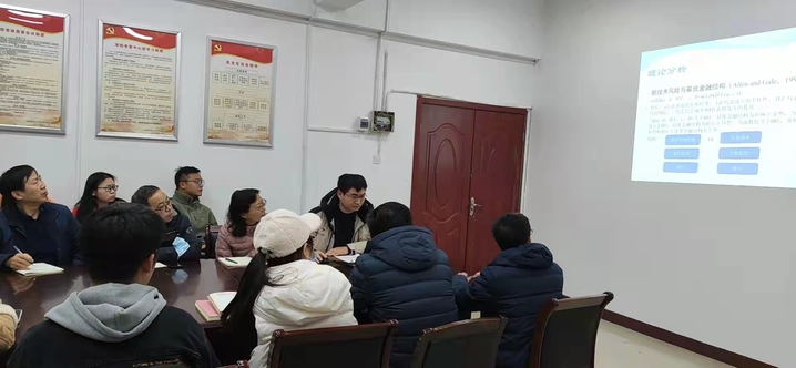 2022319午,金融资产配置与管理科研团队金融新业态与金融数学科研团队在学院会议室501联合举办了学术研讨会。会议由投资系副主任陈若愚、金科系副主任张晶主持,两个团队成员及部分研究生参与了会议。